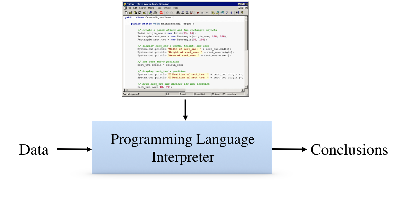 The obvious choice is traditional programming. In traditional programming, systems take the form of programs written in languages like C and Java and so forth. Such programs tell the system what to do but they do not represent the assumptions or goals. They include numerous programming details, such as variable declarations, that are no t essential to the laws being automated. And programs are typically task-specific - each is designed to accomplish a specific task.